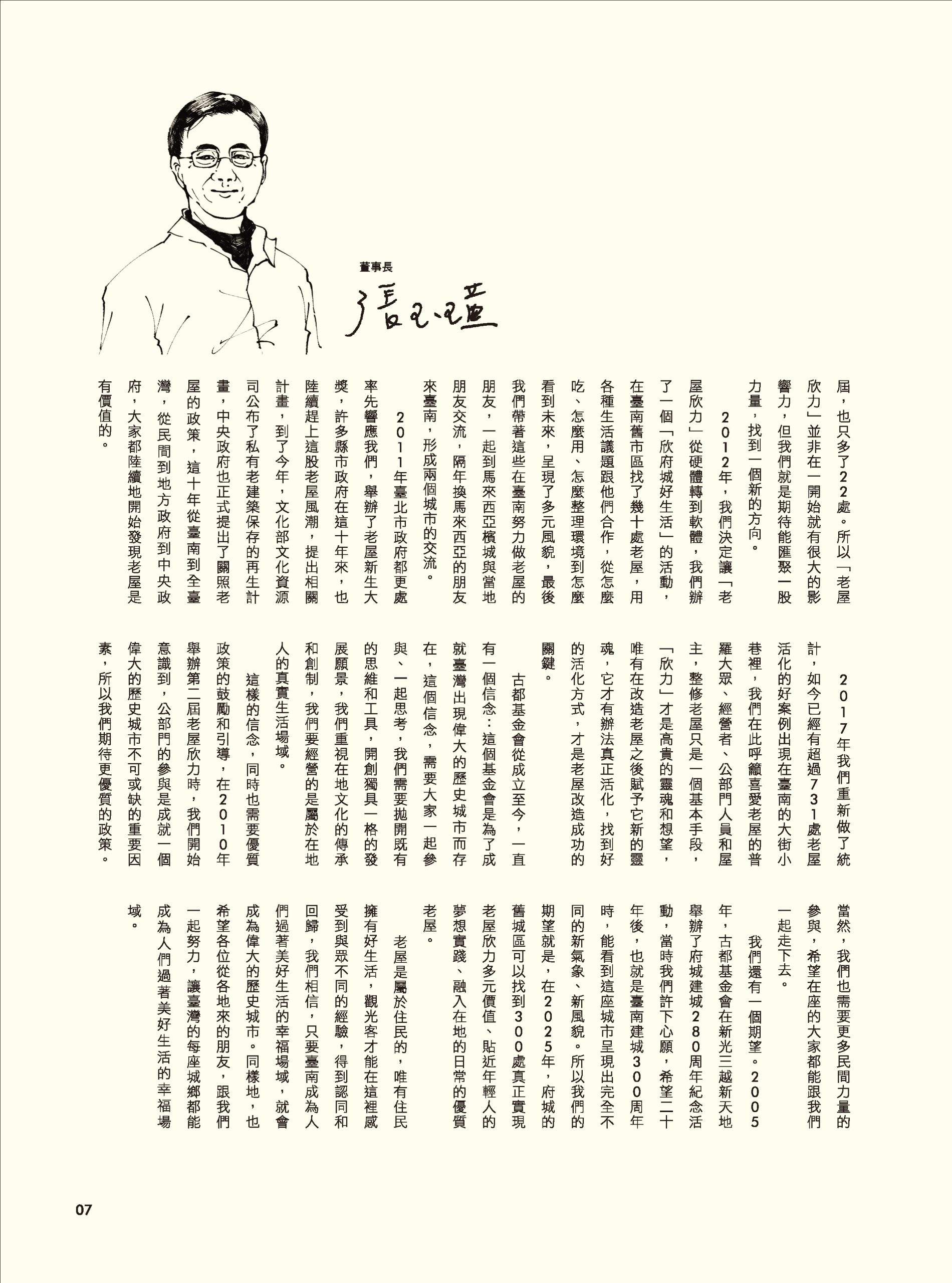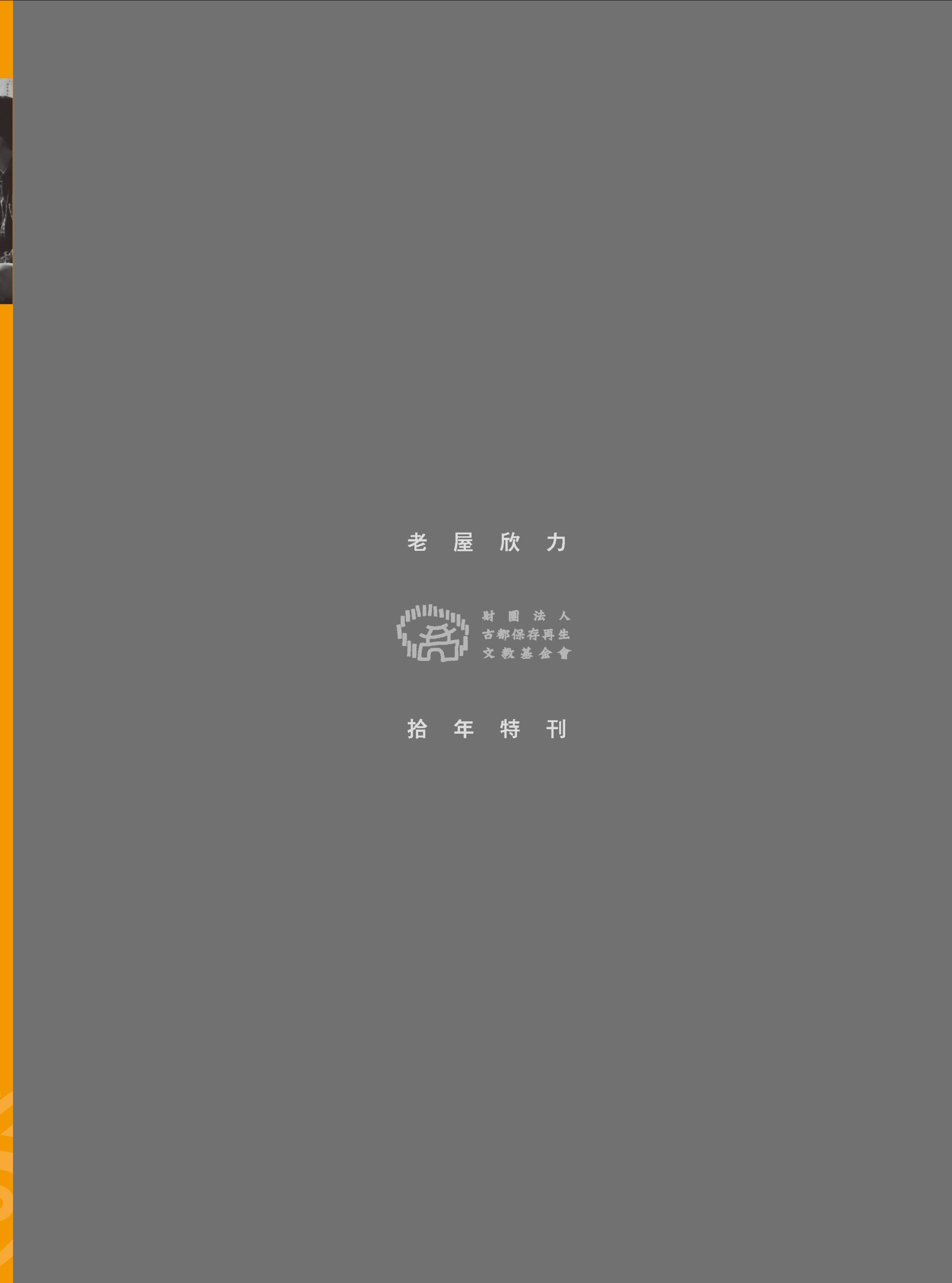 2018年,「老屋欣力」推動十年之後,古都基金會辦理了「老屋欣力拾年論壇」,本特刊特別摘錄各場次與會講者的經驗分享,包括公部門、民間組織、學者、老屋經營者、整建從業人員,來看看不同領域的角色,對老屋保存活化的看法與見解吧!